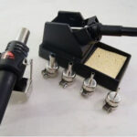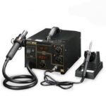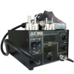 مجموعه فوق یکی از پرکاربردترین ابزار و تجهیزات برای تعمیرکاران و طراحان بردهای الکترونیکی به (ویژه بردهای دارای قطعات SMD ) می باشد. داخل دستگاه یک عدد کمپرسور تعبیه شده که با دمیدن هوای گرم شده توسط المنت و هدایت دقیق این هوا به کمک سری هایی که روی هیتر بسته میشوند بر روی پایه های قطعات حساس الکترونیکی با فشار و حرارت قابل کنترل میتوان قطعات را لحیمکاری یا بازکاری نمود.
