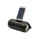 یکی از ویژگیهای منحصربهفرد این اسپیکر، قابلیت استفاده از آن به عنوان استند تلفن همراه است. این ویژگی علاوه بر کاربردی بودن، تجربه کاربری متفاوتی را به شما ارائه میدهد. همچنین باتری ۱۵۰۰ میلیآمپر ساعتی اسپیکر PS104، شارژدهی مناسبی دارد و از حالت فست شارژ پشتیبانی میکند، به شرطی که از کابل و شارژر مناسب استفاده کنید.