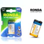 باتری 9v کتابی ارزان قیمت و مرغوب مدل 6F22 مارک Ronda کیفت عالی مناسب برای دستگاههای قابل حمل کم مصرف نظیر میکروفون، اسباب بازی، آشکارساز دود، مولتیمتر و…